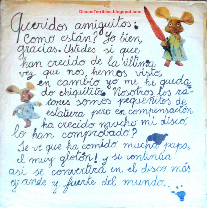 Discos Terribles El Topo Gigio - Y cuando llega la tarde jugar o ver la tv, luego cenar en familia y el buenas noches por que el dia ya se fue.