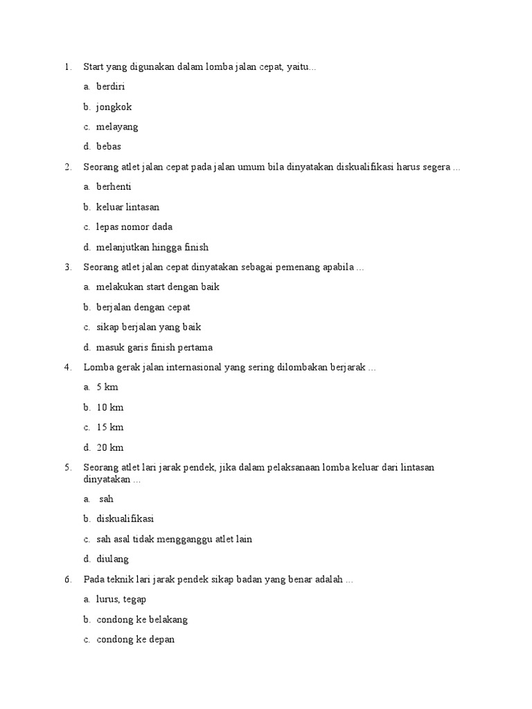 Soal Penjas Igm 1 Docx - Olahraga lari adalah bagian dari cabang atletik yang sering diperlombakan dalam perhelatan resmi mulai dari pon.
