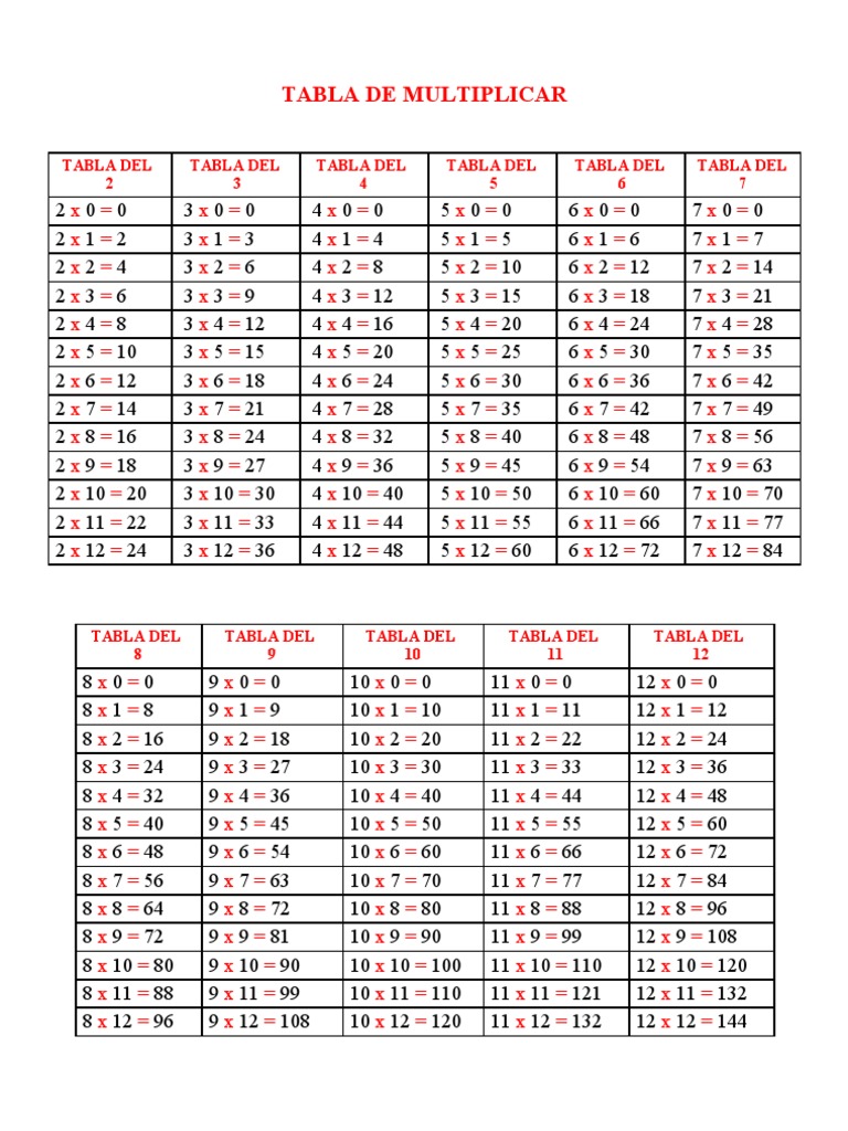 Tablas De Multiplicacion - Start studying tabla del 12.